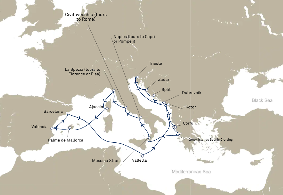16 puertos desde Civitavecchia (Roma)