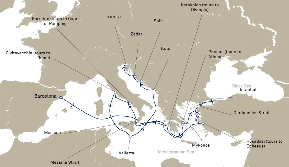 16 puertos de Barcelona a Trieste