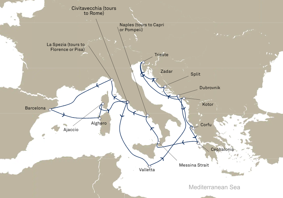 15 puertos desde Civitavecchia (Roma)
