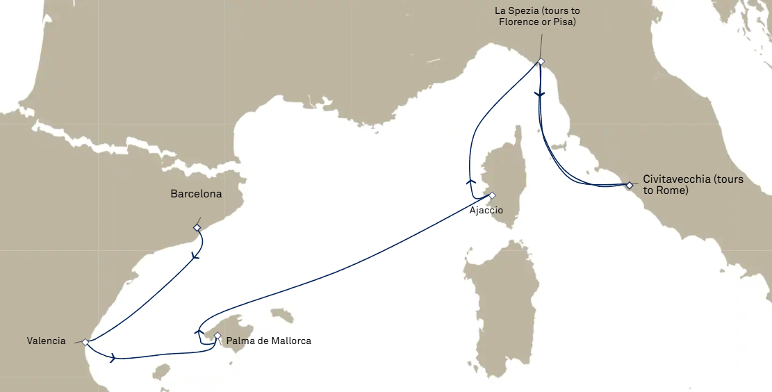 6 puertos de Barcelona a Civitavecchia (Roma)