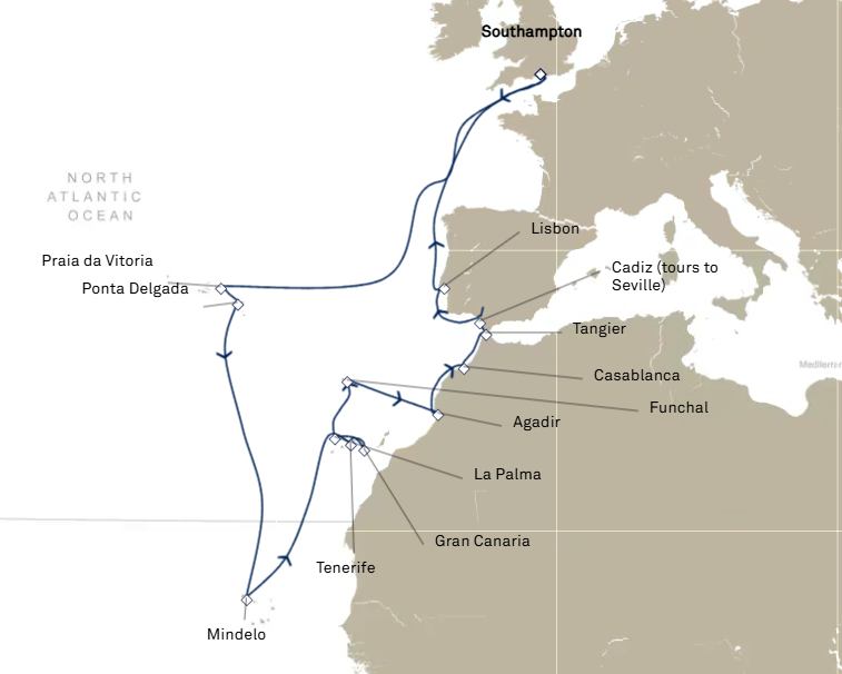 13 puertos desde Southampton (Londres)