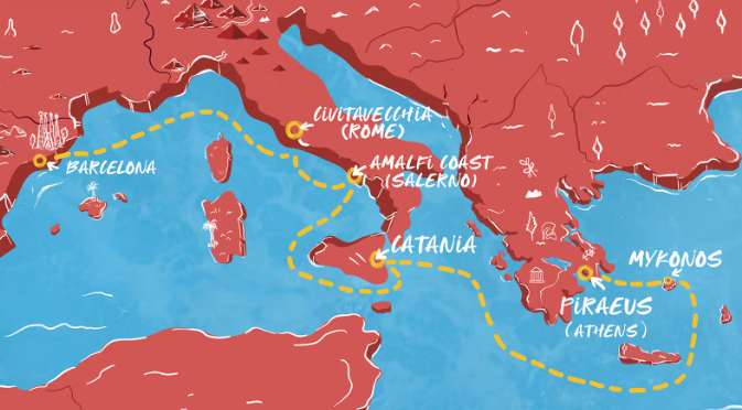 El orden de los puertos y / o el contenido del itinerario puede variar