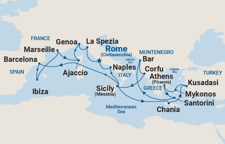 16 puertos desde Civitavecchia (Roma)
