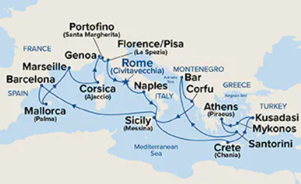 17 puertos desde Civitavecchia (Roma)