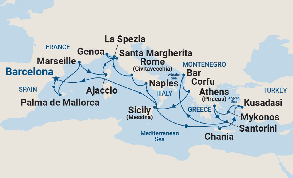 El orden de los puertos y / o el contenido del itinerario puede variar