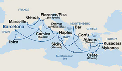 El orden de los puertos y / o el contenido del itinerario puede variar