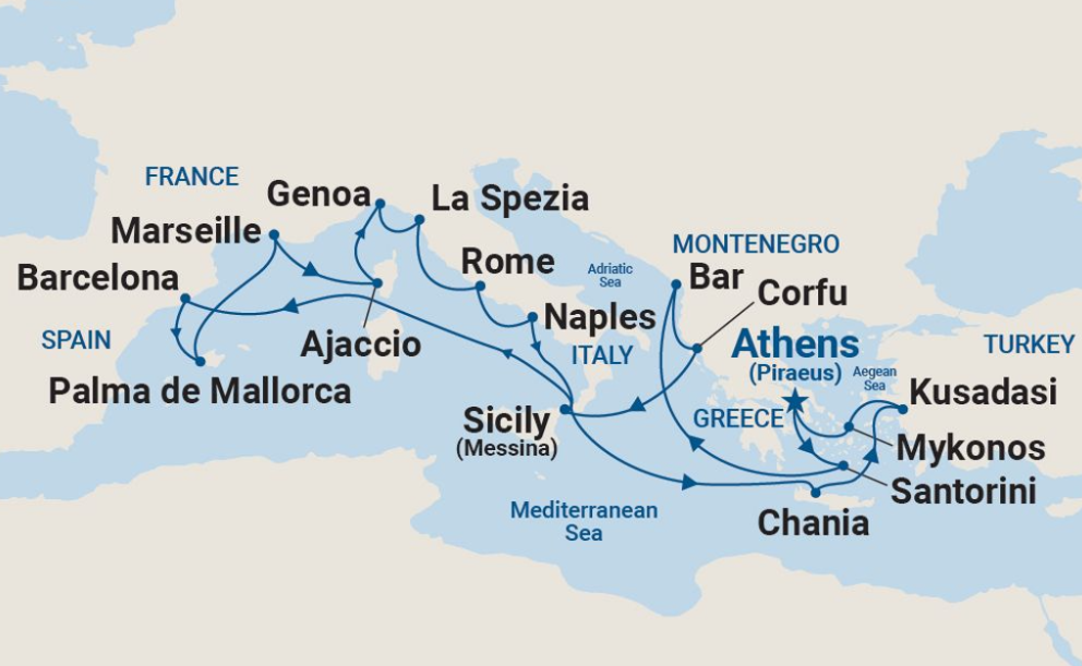 16 puertos desde Pireo (Atenas)