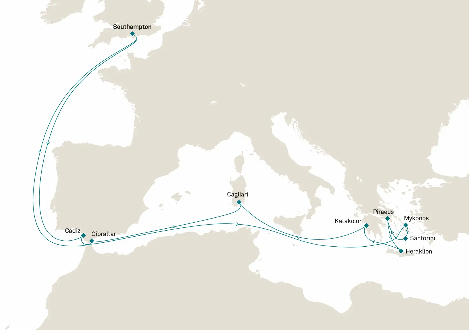 9 puertos desde Southampton (Londres)