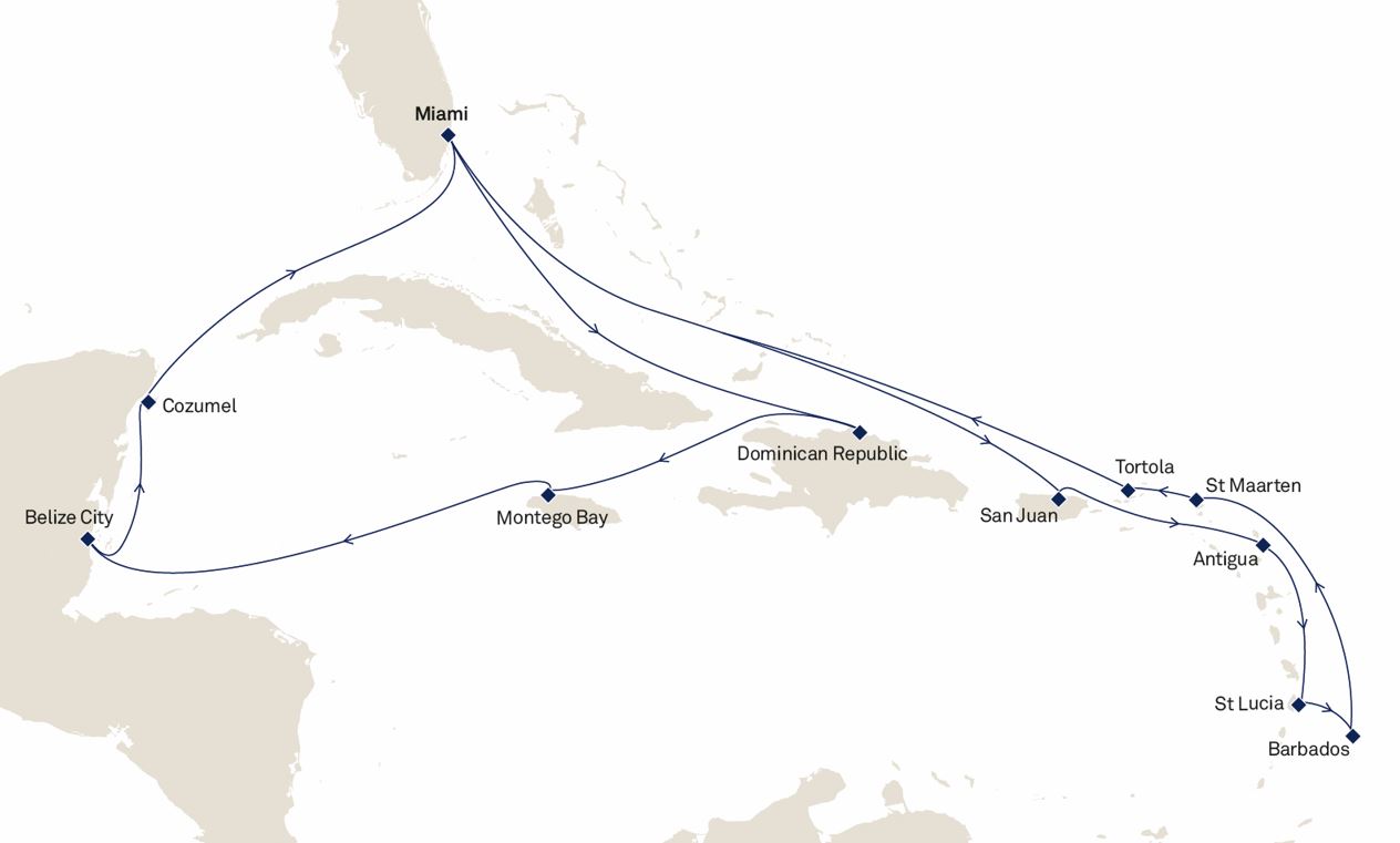 11 puertos desde Miami