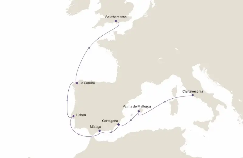 7 puertos de Civitavecchia (Roma) a Southampton (Londres)