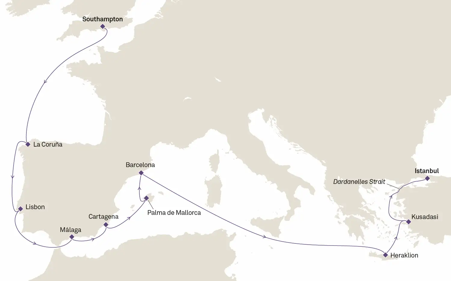 11 puertos de Southampton (Londres) a Estambul