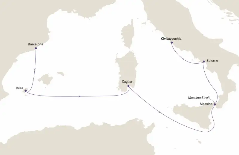 7 puertos de Barcelona a Civitavecchia (Roma)