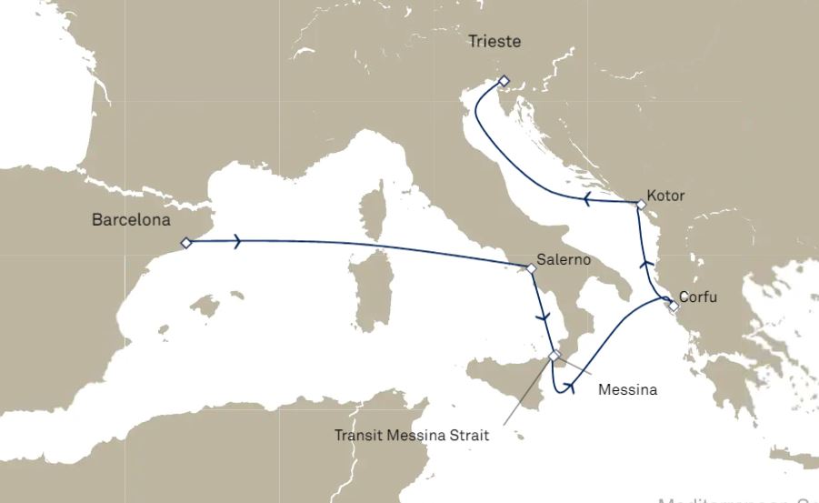 El orden de los puertos y / o el contenido del itinerario puede variar