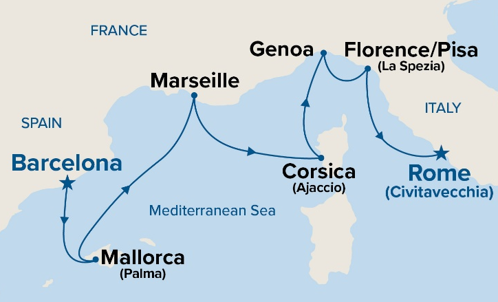 7 puertos de Barcelona a Civitavecchia (Roma)