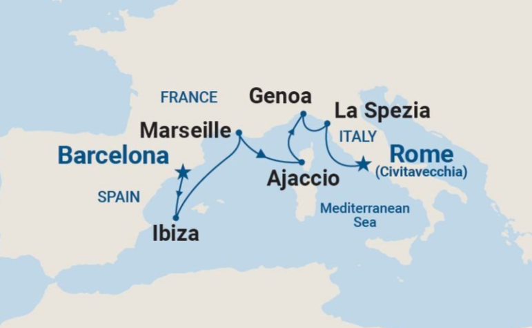 7 puertos de Barcelona a Civitavecchia (Roma)