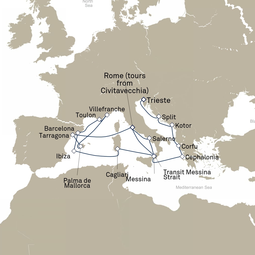 16 ports from Civitavecchia (Rome) to Trieste