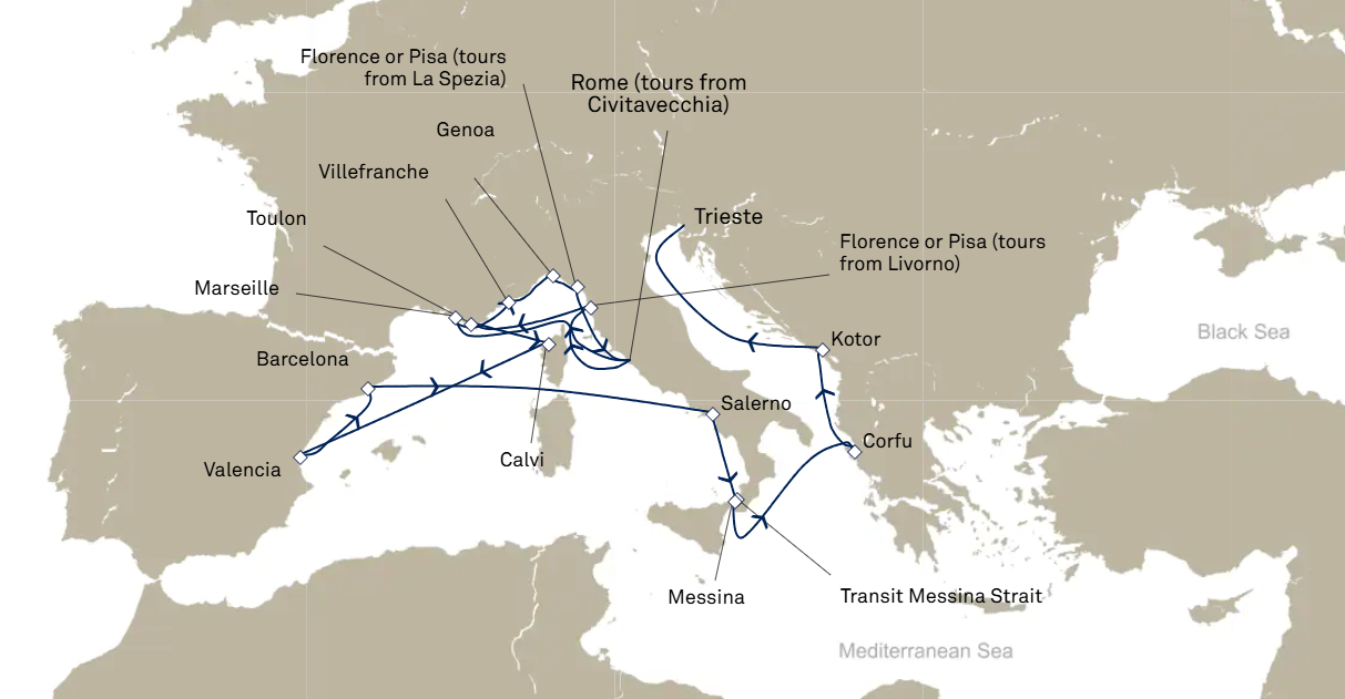 Prices are EUROS or US DOLLARS as indicated in the Price table. They are CRUISE ONLY prices on full board, excluding any air or land service EXCEPT if otherwise indicated in the itinerary program. Prices and availability shown are subject to changes until the time of booking.Los precios no incluyen las propinas, son voluntarias.Antes de confirmar su reserva en el proceso online, se mostrará con claridad el Precio Completo del crucero y los servicios adicionales solicitados, y se indicará el calendario de pagos y el calendario de penalizaciones en caso de cancelación que usted deberá aceptar para poder continuar con la reserva.Así mismo con la realización de la reserva se acepta del Contrato de Pasaje que vincula la relación entre el pasajero y la naviera Cunard.A modo informativo las condiciones más habituales de reserva son las siguientes:Para la confirmación de reservas realizadas con antelación de mas de 80 días de la fecha de navegación se solicitará el pago de un depósito de confirmación reducido de solo 60 eur / persona, no reembolsable, ni transferible en caso de cancelación antes la fecha de pago final. Este depósito no es aplicable a cruceros de vuelta al mundo y en algunos cruceros a camarotes en categorías tipo Suite. Como alternativa, también se pueden confirmar mediante el pago del 25% del importe total del crucero a la fecha de opción. En este caso no aplican gastos de cancelación del crucero antes de la fecha de pago final. Adicionalmente, para cruceros cuyo programa de itinerario incluya paquete aeroterrestre se solicitará el pago de un depósito adicional de 120 eur/persona, no reembolsable, ni transferible en caso de cancelación antes de la fecha de pago final.Pago final: 80 días antes de la fecha de navegación. En caso de no recibir el importe final en la fecha indicada, la compañía cancelará automáticamente la reserva del crucero con gastos de penalización del 10% del precio total del crucero.Para reservas realizadas a menos de 80 días de la fecha de navegación se solicitará pago total a la fecha de opción.Los cambios de nombres están permitidos hasta 30 días antes de la fecha de salida salvo que la tarifa promocional aplicada indique lo contrario.Los servicios terrestres de la naviera deben solicitarse con fecha límite hasta 20 días antes del inicio de la navegación.Los aéreos contratados con la naviera solo pueden incluirse una vez confirmado el crucero, no permiten cambio de nombres y no son reembolsables en caso de cancelación