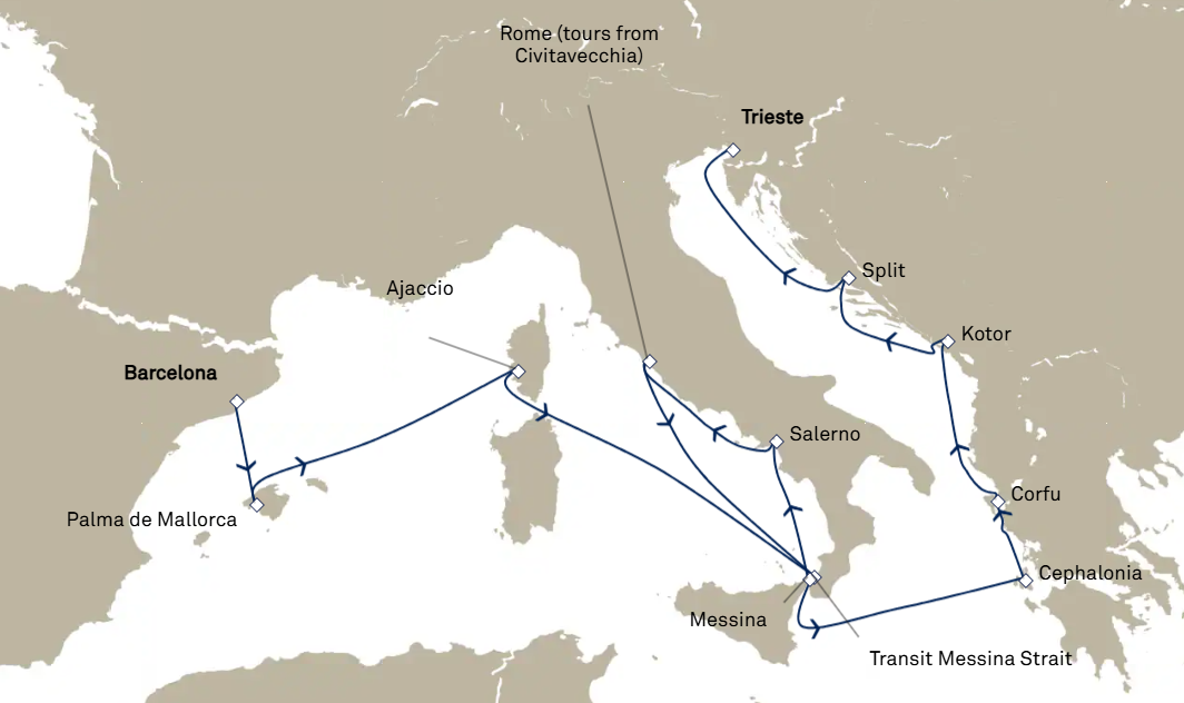 14 ports from Barcelona to Trieste