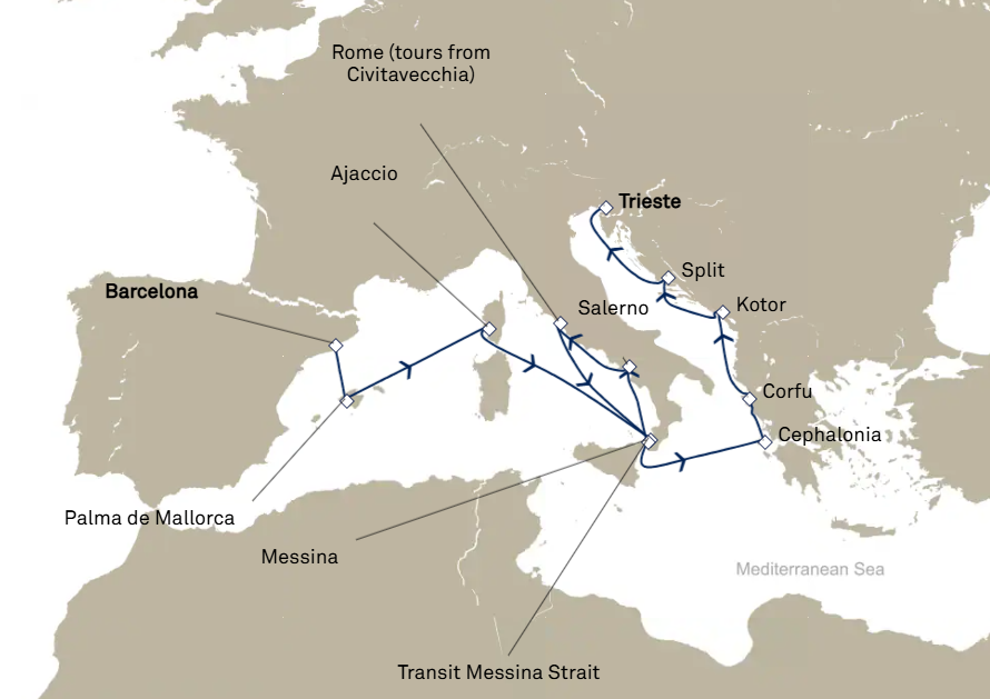 13 ports from Barcelona to Trieste