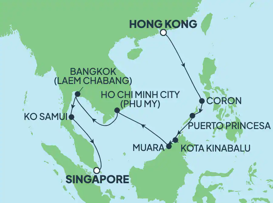 9 ports from Hong Kong to Singapore