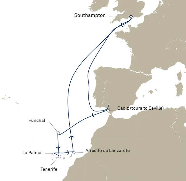 Prices are EUROS or US DOLLARS as indicated in the Price table. They are CRUISE ONLY prices on full board, excluding any air or land service EXCEPT if otherwise indicated in the itinerary program. Prices and availability shown are subject to changes until the time of booking.Los precios no incluyen las propinas, son voluntarias.Antes de confirmar su reserva en el proceso online, se mostrará con claridad el Precio Completo del crucero y los servicios adicionales solicitados, y se indicará el calendario de pagos y el calendario de penalizaciones en caso de cancelación que usted deberá aceptar para poder continuar con la reserva.Así mismo con la realización de la reserva se acepta del Contrato de Pasaje que vincula la relación entre el pasajero y la naviera Cunard.A modo informativo las condiciones más habituales de reserva son las siguientes:Para la confirmación de reservas realizadas con antelación de mas de 80 días de la fecha de navegación se solicitará el pago de un depósito de confirmación reducido de solo 60 eur / persona, no reembolsable, ni transferible en caso de cancelación antes la fecha de pago final. Este depósito no es aplicable a cruceros de vuelta al mundo y en algunos cruceros a camarotes en categorías tipo Suite. Como alternativa, también se pueden confirmar mediante el pago del 25% del importe total del crucero a la fecha de opción. En este caso no aplican gastos de cancelación del crucero antes de la fecha de pago final. Adicionalmente, para cruceros cuyo programa de itinerario incluya paquete aeroterrestre se solicitará el pago de un depósito adicional de 120 eur/persona, no reembolsable, ni transferible en caso de cancelación antes de la fecha de pago final.Pago final: 80 días antes de la fecha de navegación. En caso de no recibir el importe final en la fecha indicada, la compañía cancelará automáticamente la reserva del crucero con gastos de penalización del 10% del precio total del crucero.Para reservas realizadas a menos de 80 días de la fecha de navegación se solicitará pago total a la fecha de opción.Los cambios de nombres están permitidos hasta 30 días antes de la fecha de salida salvo que la tarifa promocional aplicada indique lo contrario.Los servicios terrestres de la naviera deben solicitarse con fecha límite hasta 20 días antes del inicio de la navegación.Los aéreos contratados con la naviera solo pueden incluirse una vez confirmado el crucero, no permiten cambio de nombres y no son reembolsables en caso de cancelación