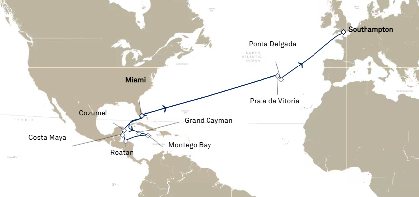 9 ports from Miami to Southampton (London)
