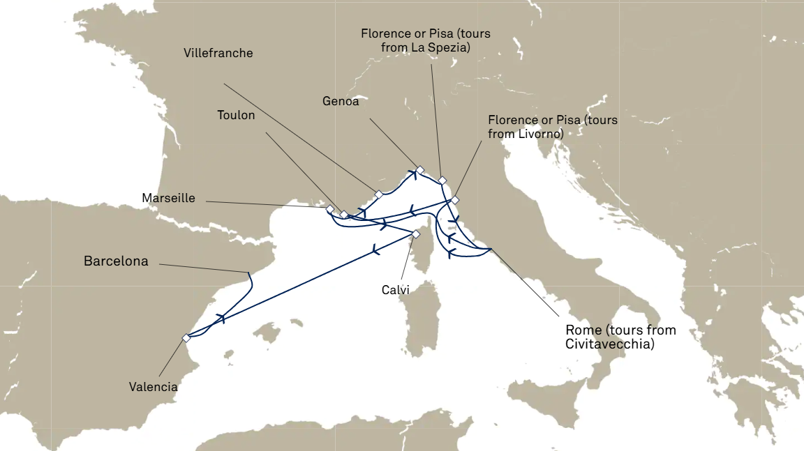 10 ports from Civitavecchia (Rome) to Barcelona