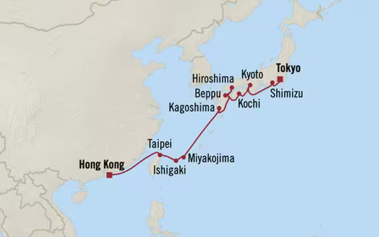 11 ports from Hong Kong to Yokohama (Tokyo)