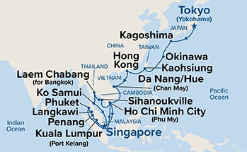 15 ports from Tokyo to Singapore