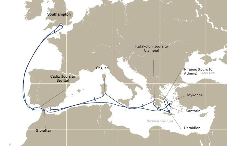 9 ports from Southampton (London)