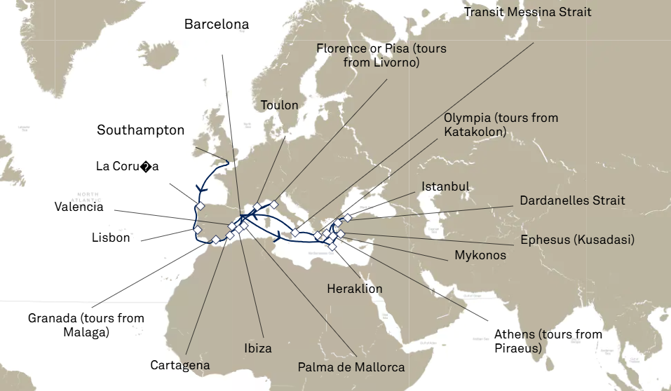 Prices are EUROS or US DOLLARS as indicated in the Price table. They are CRUISE ONLY prices on full board, excluding any air or land service EXCEPT if otherwise indicated in the itinerary program. Prices and availability shown are subject to changes until the time of booking.Los precios no incluyen las propinas, son voluntarias.Antes de confirmar su reserva en el proceso online, se mostrará con claridad el Precio Completo del crucero y los servicios adicionales solicitados, y se indicará el calendario de pagos y el calendario de penalizaciones en caso de cancelación que usted deberá aceptar para poder continuar con la reserva.Así mismo con la realización de la reserva se acepta del Contrato de Pasaje que vincula la relación entre el pasajero y la naviera Cunard.A modo informativo las condiciones más habituales de reserva son las siguientes:Para la confirmación de reservas realizadas con antelación de mas de 80 días de la fecha de navegación se solicitará el pago de un depósito de confirmación reducido de solo 60 eur / persona, no reembolsable, ni transferible en caso de cancelación antes la fecha de pago final. Este depósito no es aplicable a cruceros de vuelta al mundo y en algunos cruceros a camarotes en categorías tipo Suite. Como alternativa, también se pueden confirmar mediante el pago del 25% del importe total del crucero a la fecha de opción. En este caso no aplican gastos de cancelación del crucero antes de la fecha de pago final. Adicionalmente, para cruceros cuyo programa de itinerario incluya paquete aeroterrestre se solicitará el pago de un depósito adicional de 120 eur/persona, no reembolsable, ni transferible en caso de cancelación antes de la fecha de pago final.Pago final: 80 días antes de la fecha de navegación. En caso de no recibir el importe final en la fecha indicada, la compañía cancelará automáticamente la reserva del crucero con gastos de penalización del 10% del precio total del crucero.Para reservas realizadas a menos de 80 días de la fecha de navegación se solicitará pago total a la fecha de opción.Los cambios de nombres están permitidos hasta 30 días antes de la fecha de salida salvo que la tarifa promocional aplicada indique lo contrario.Los servicios terrestres de la naviera deben solicitarse con fecha límite hasta 20 días antes del inicio de la navegación.Los aéreos contratados con la naviera solo pueden incluirse una vez confirmado el crucero, no permiten cambio de nombres y no son reembolsables en caso de cancelación