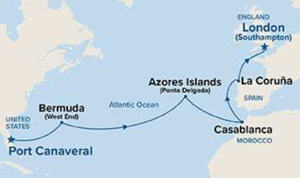 6 ports from Puerto Cañaveral (USA) to Southampton (London)