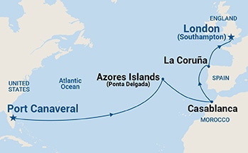 5 ports from Puerto Cañaveral (USA) to Southampton (London)