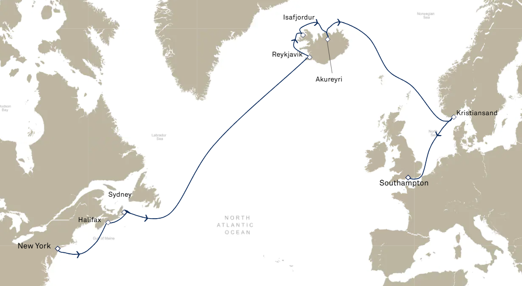 8 ports from New York to Southampton (London)
