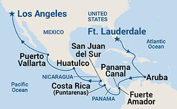 9 ports from Fort Lauderdale (Miami) to Los Angeles