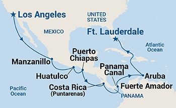 9 ports from Los Angeles to Fort Lauderdale (Miami)
