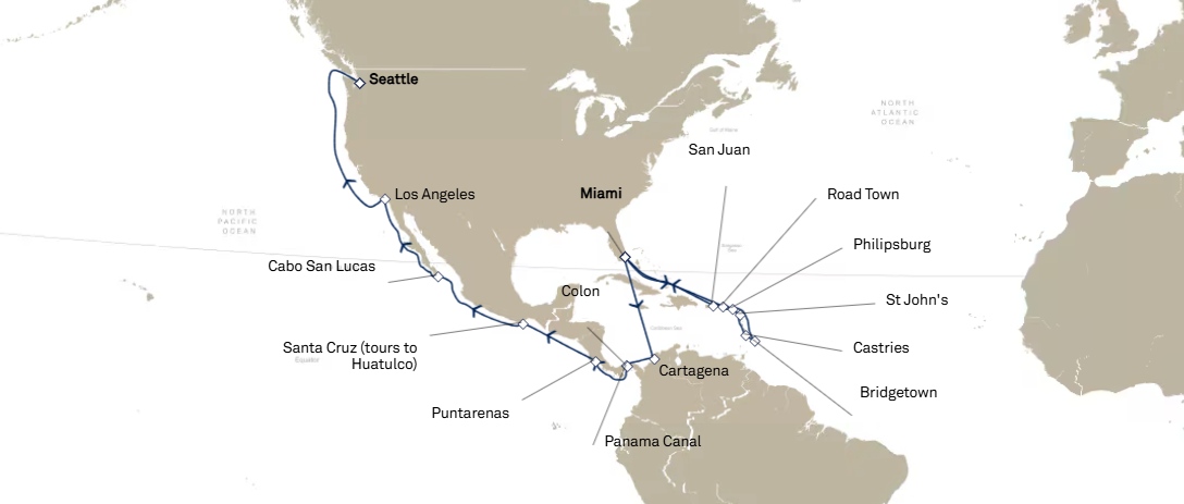 15 ports from Miami to Seattle