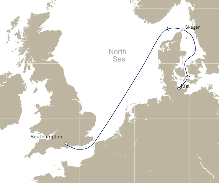 3 ports from Kiel to Southampton (London)