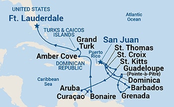14 ports from San Juan to Fort Lauderdale (Miami)