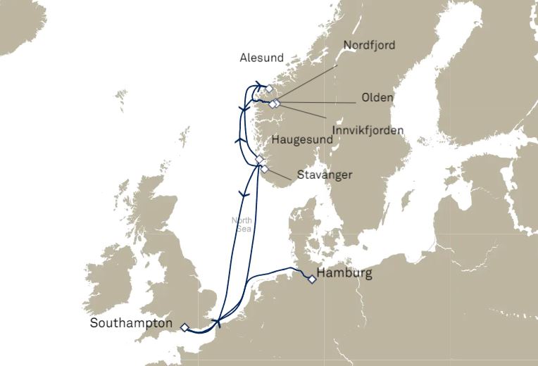 6 ports from Southampton (London) to Hamburg