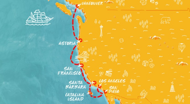 7 ports from Vancouver to Los Angeles