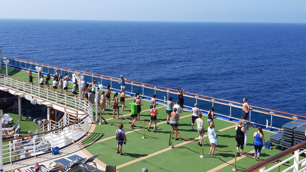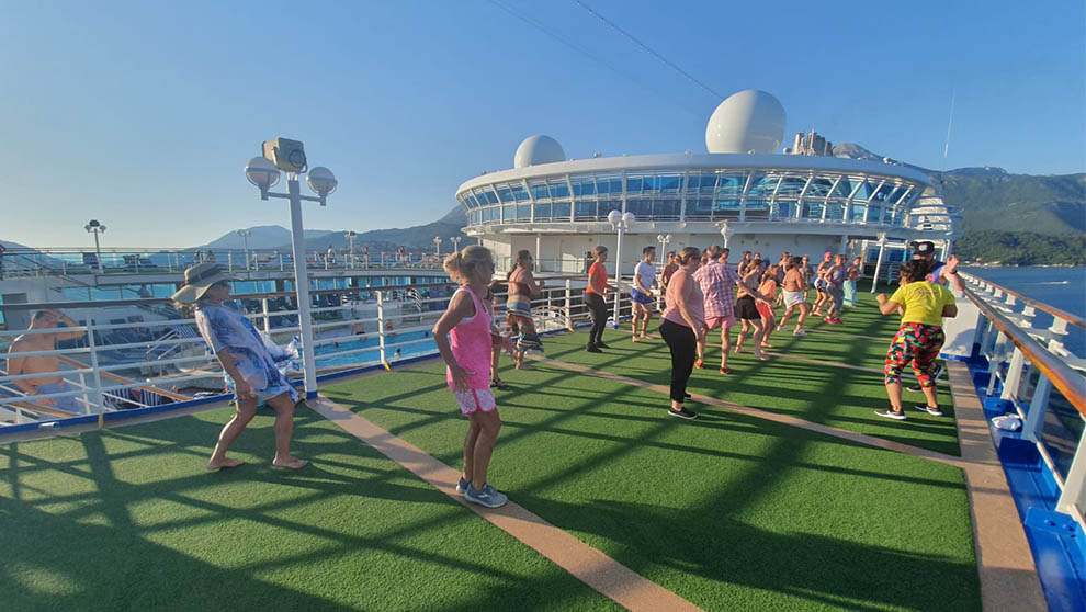 His goal in this cruises? That the passengers forget all his problems, that they don’t remember they are exercising and they smile and dance non stop