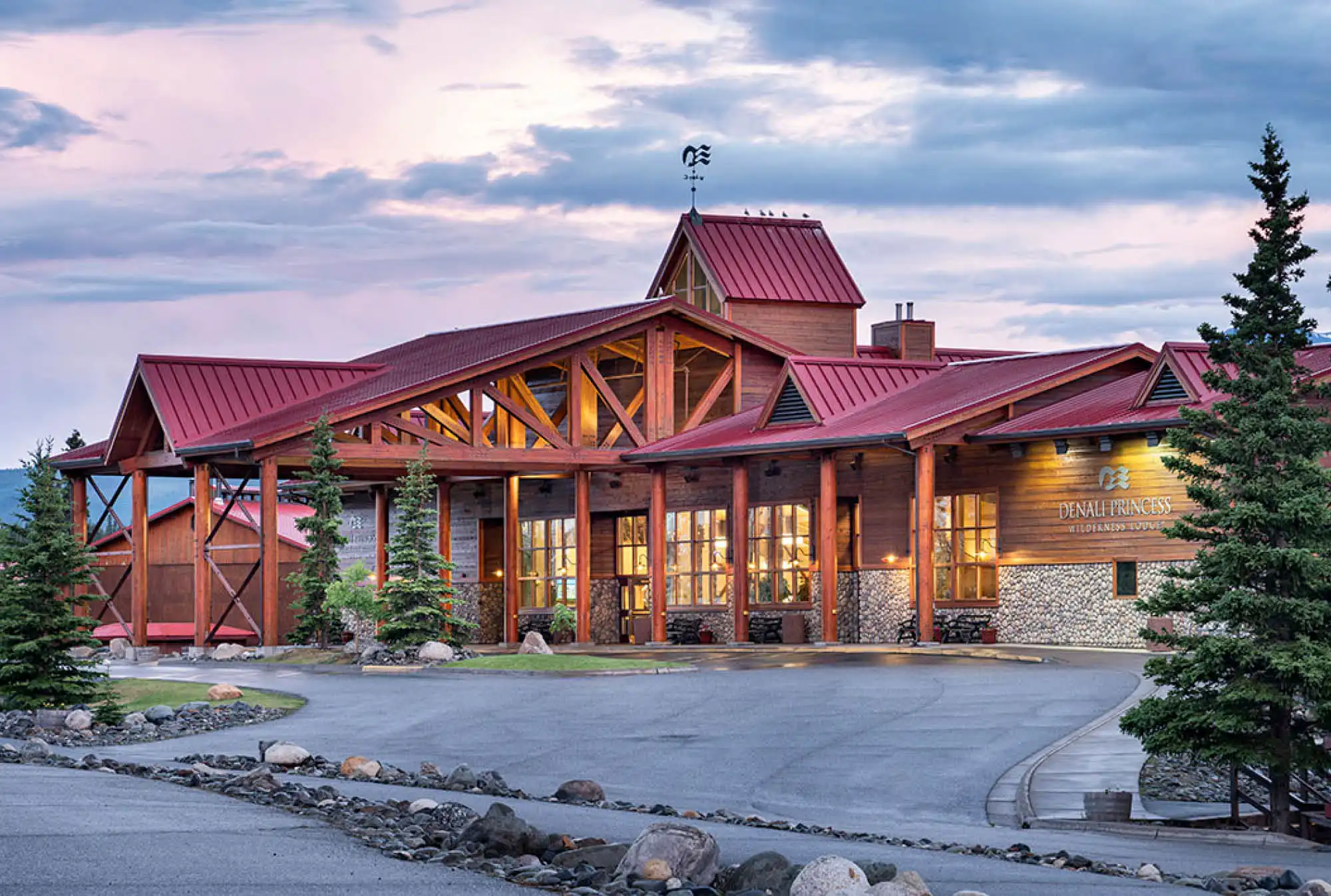 This incredible accommodation is Princess's private lodge located just 1.5 km (approx) from the entrance to Denali National Park. Designed as a cozy base camp in the heart of Alaska's nature with views of the Nenana River and easy access to park tours and adventure activities.